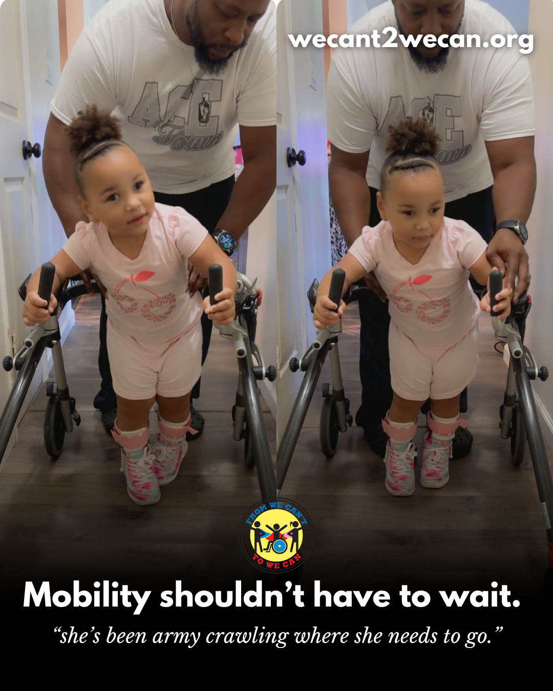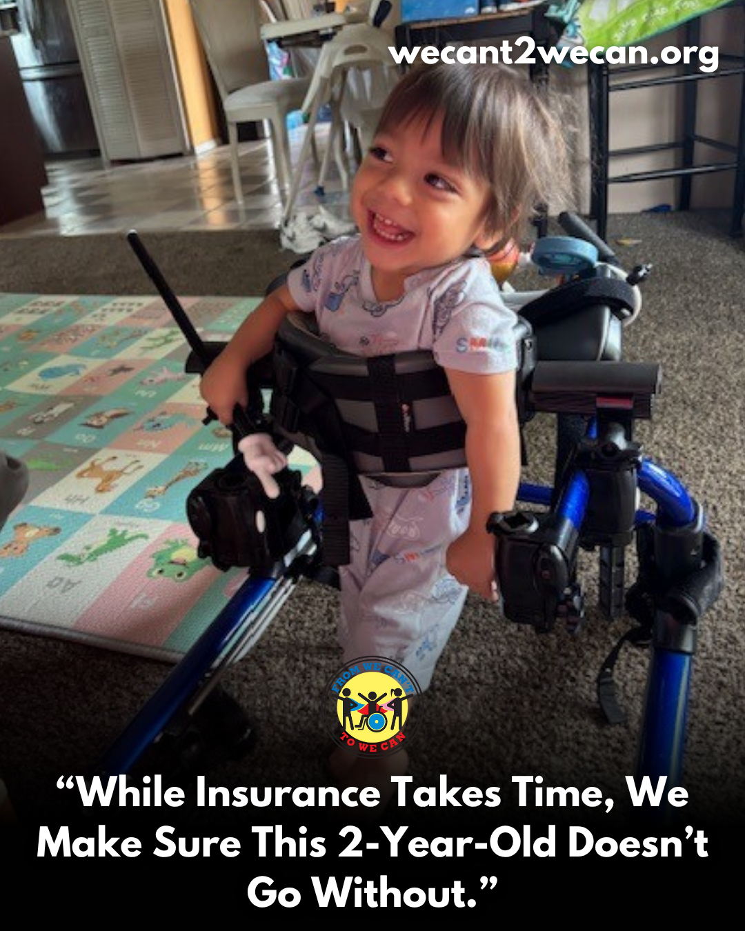 “The stroller got denied by our insurance but it has a tremendous importance for him. We are grateful for a great group of volunteers from We Can’t to We Can who made it possible. The whole process was super easy and smooth.”